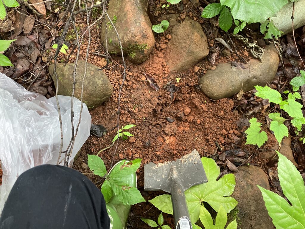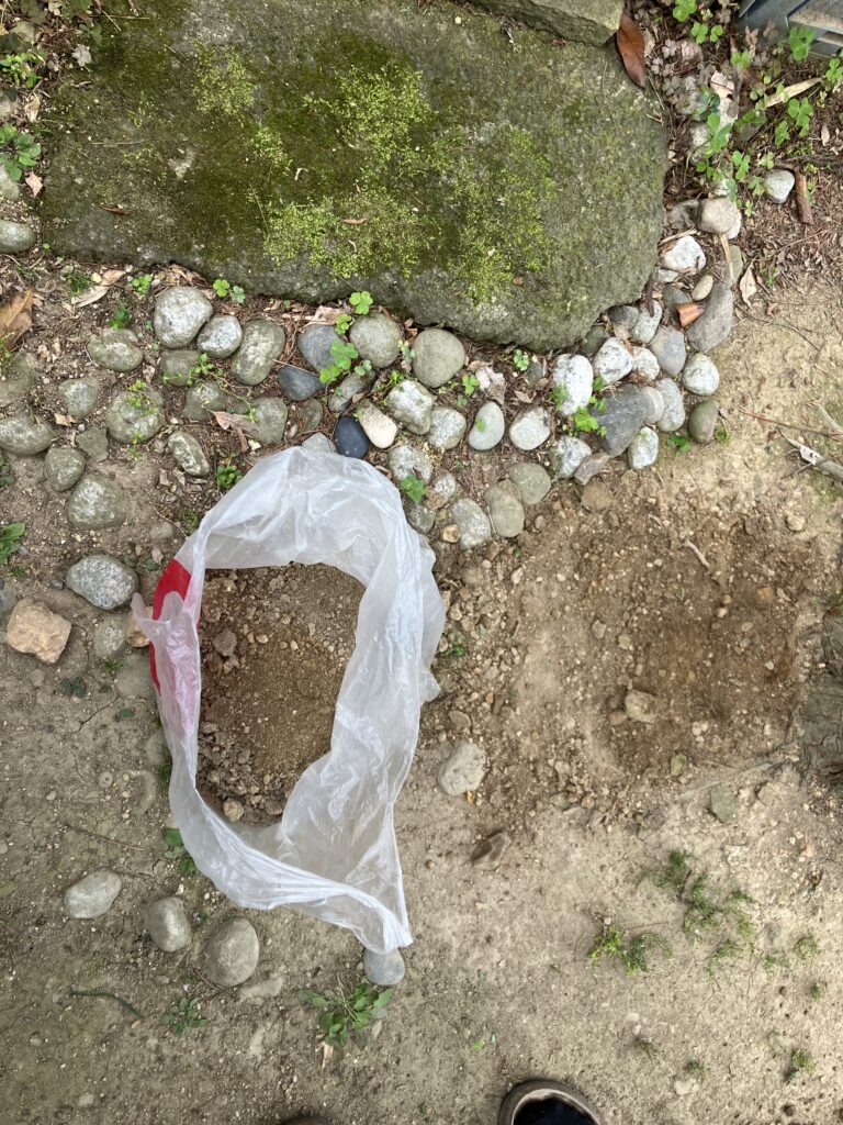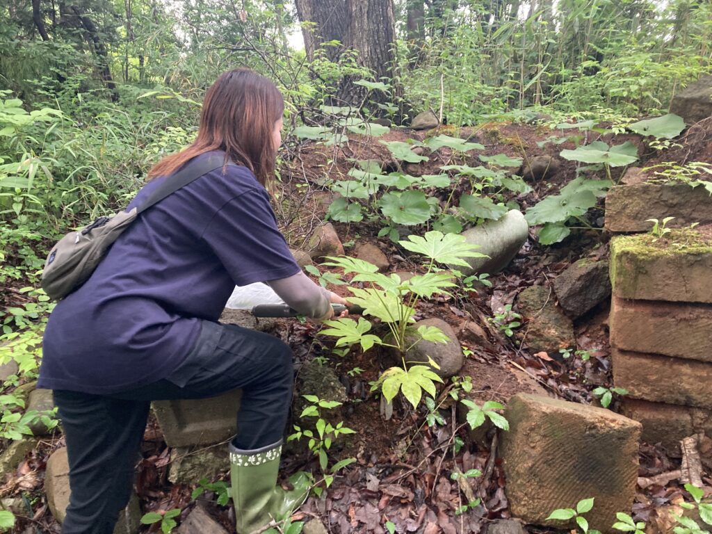 佐藤家は、原宿から白石市に移りました。佐藤家は”ダム湖に沈んだ山村の知恵~山中七ヶ宿・原集落風土記~”著者 の佐藤石太郎さんの娘さん夫婦が暮らしています。白石市の丘の上にあるお宅は、広い庭に沢山の植物と猫が出迎えてくれる気持ちが良い場所です。ここの少し奥に祠が見え、そこから少し進むと4つ程の小さな山があり、よく見ると古い炭窯だと確認できました。昔、石太郎さんが使用していた釜が、形を保ってまだ残っていました。佐藤家は、移転してからも様々な人が常に訪ねてくる賑やかなお宅で、ずっと笑いが絶えないお家でした。「移転してもみんな訪ねて来てくれていたから、寂しくなかった」との事でした。移転した先でも畑を開墾したり炭焼きをしたりと、やることも山ほどありました。石太郎さんが畑にも炭窯を作っていたので、煙を浴びていた当時中学生だったお孫さんが学校の先生にタバコを吸ってると疑われたは話など、面白エピソードトークが尽きないお宅です。
