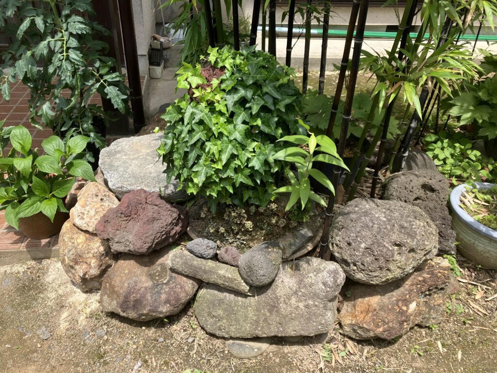古川さんは、原宿から白石市に移転をしました。当時は、20代後半だったの事。移転の際に父が、自分達の畑にあった祠も移転先へ一緒に建て直しました。見晴らしが良い白石市の古川家の庭には、沢山の植物に囲まれた中に、今でもしっかりとお祀りしています。また左側の写真は、玄関先に飾られてる石段で、一部は原宿から持ってきたものだそうです。ダムに沈む前の工事の合間に掘り起こされた石を持ってきたそうです。移転後に、同じ原出身で白石市に住む奥さんと結婚しました。古川家に行くと、原宿が蘇っている様な気持ちになりました。